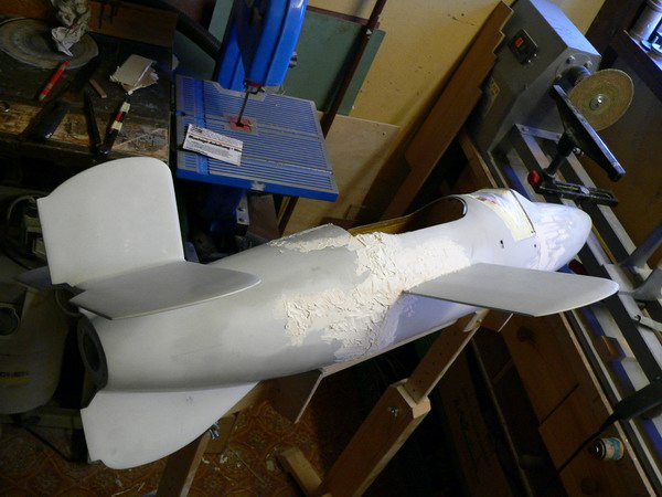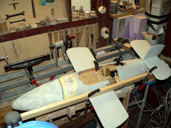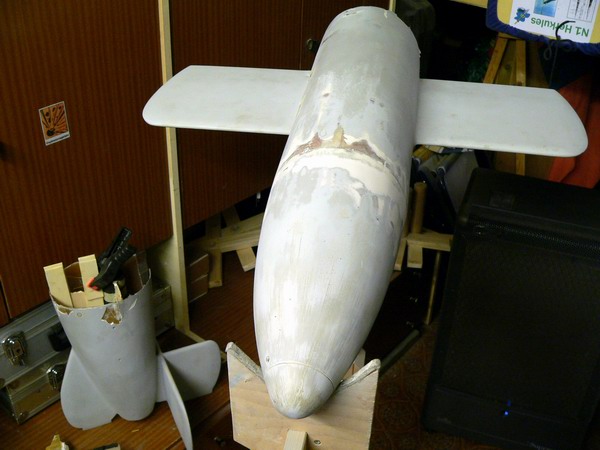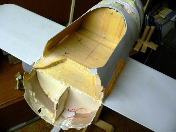 Ihr kennt ja mein Arbeitstempo... die rechte Seite ist fertig repariert. Mit 3 - 4 Lagen Glasgewebe von innen verbunden und von außen drübergespachtelt. Morgen gehts mit dem Schwingschleifer drüber. Den Motorabschlußspant musste ich auch neu einpassen. Wenn sie nochmals abstürzen sollte, dann bricht sie garantiert nicht mahr an dieser Stelle Folgende Datei wurde angehängt:
